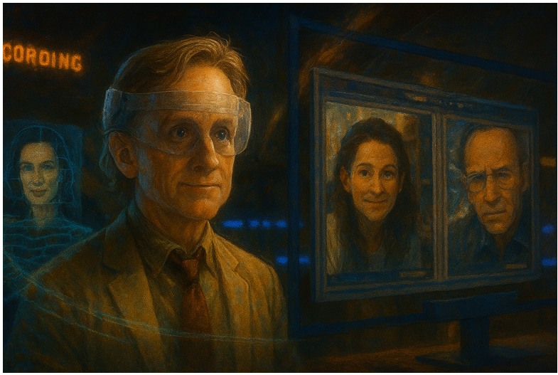 Original frame from *Minority Report* (2002), directed by Steven Spielberg © DreamWorks/20th Century Fox. AI-assisted transformation using DALL·E 3, edited by James Baty. Used under fair use for artistic commentary, research and education.