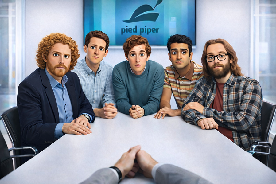 Original frame from Silicon Valley (2016), directed by Alec Berg, Mike Judge, © HBO. Inc. AI-assisted transformation using DALL·E 3, edited by James Baty. Used under fair use for artistic commentary, research and education.