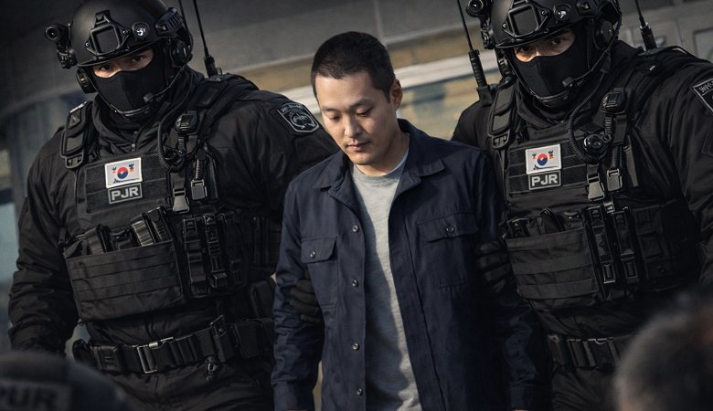 Original photo of extradition of Do Kwon, © Filip Filipovic/Getty Images 1925. AI-assisted transformation using DALL·E 3, edited by James Baty. Used under fair use for artistic commentary, research and education.