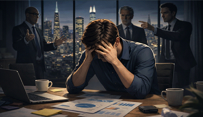 Concept from prolific internet meme of displaced / failed CXO. AI-assisted synthesis using DALL·E 3, edited by James Baty. Used under fair use for artistic commentary, research and education.